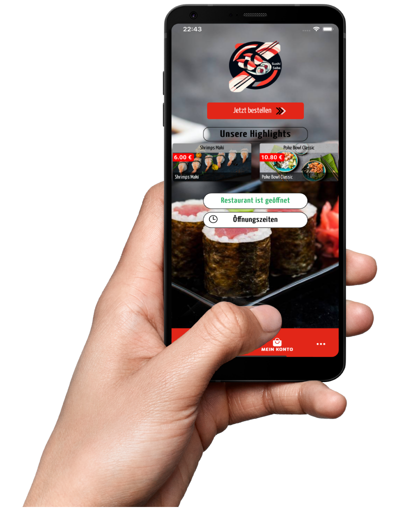 Mit der Sushi Saba App bestellen Sie Ihr Lieblingssushi schnell und bequem. Entdecken Sie unsere Speisekarte, wählen Sie Abholung oder Lieferung und genießen Sie frische Sushi-Kreationen jederzeit und überall.